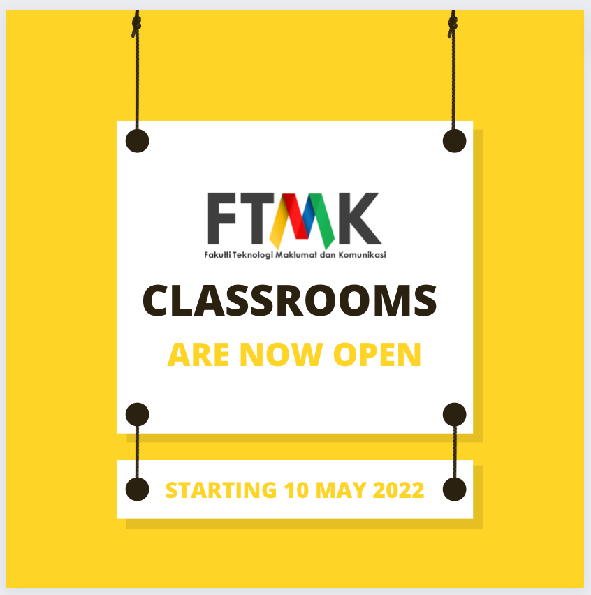 Semua bilik kuliah FTMK dibuka untuk pelajar FTMK bermula 8:00 pagi Selasa 10 Mei 2022 dengan matlamat berikut: i. membekalkan…