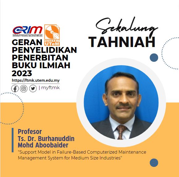 ð—¦ð—²ð—¸ð—®ð—¹ð˜‚ð—»ð—´ ð—§ð—®ð—µð—»ð—¶ð—®ð—µ kepada penyelidik-penyelidik FTMK UTeM di atas kejayaan menerima Geran Penyelidikan Penerbitan Buku Ilmiah 2023. Syabas dan Tahniah! Lebih banyak info/gambar di pautan ini … Dekan Fakulti Teknologi Maklumat Dan Komunikasi, UTeM Pusat Pengurusan Penyelidikan & Inovasi UTeM Penerbit UTeM Universiti Teknikal Malaysia Melaka – UTeM #myftmk