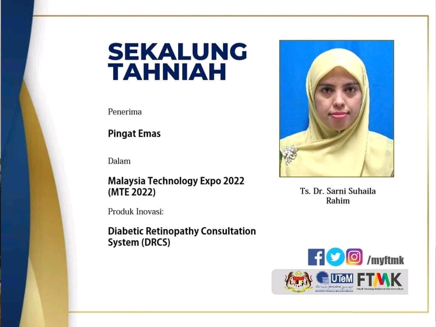 Ucapan Tahniah pencapaian dalam ð— ð—®ð—¹ð—®ð˜†ð˜€ð—¶ð—® ð—§ð—²ð—°ð—µð—»ð—¼ð—¹ð—¼ð—´ð˜† ð—˜ð˜…ð—½ð—¼ ðŸ®ðŸ¬ðŸ®ðŸ® (ð— ð—§ð—˜ ðŸ®ðŸ¬ðŸ®ðŸ®) dan ð—©ð—¶ð—¿ð˜ð˜‚ð—®ð—¹ ð—¥ð—²ð˜€ð—²ð—®ð—¿ð—°ð—µ ð—®ð—»ð—± ð—œð—»ð—»ð—¼ð˜ƒð—®ð˜ð—¶ð—¼ð—» ð—˜ð˜…ð—µð—¶ð—¯ð—¶ð˜ð—¶ð—¼ð—» (ð—˜ð—¥ð—˜ð—žð—” ðŸ®ðŸ¬ðŸ®ðŸ®)… Posted by FTMK UTeM on Sunday, March 26, 2022