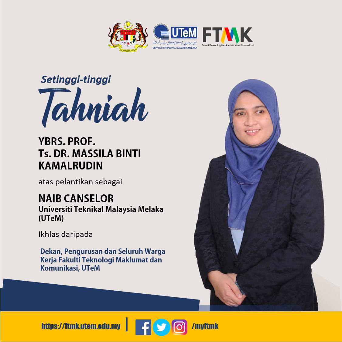 Ucapan ð—§ð—®ð—µð—»ð—¶ð—®ð—µ pelantikan ð‘µð’‚ð’Šð’ƒ ð‘ªð’‚ð’ð’”ð’†ð’ð’ð’“ ð‘¼ð‘»ð’†ð‘´… Posted by FTMK UTeM on Monday, March 21, 2021