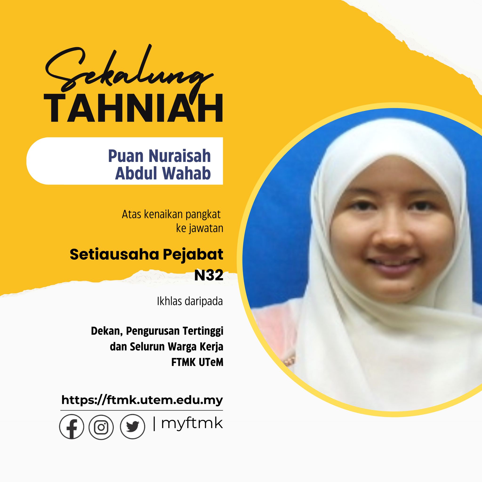 Fakulti Teknologi Maklumat dan Komunikasi UTeM mengucapkan ð‘†ð‘’ð‘˜ð‘Žð‘™ð‘¢ð‘›ð‘” ð‘‡ð‘Žâ„Žð‘›ð‘–ð‘Žâ„Ž di atas ðŠðžð§ðšð¢ð¤ðšð§ ððšð§ð ð¤ðšð: