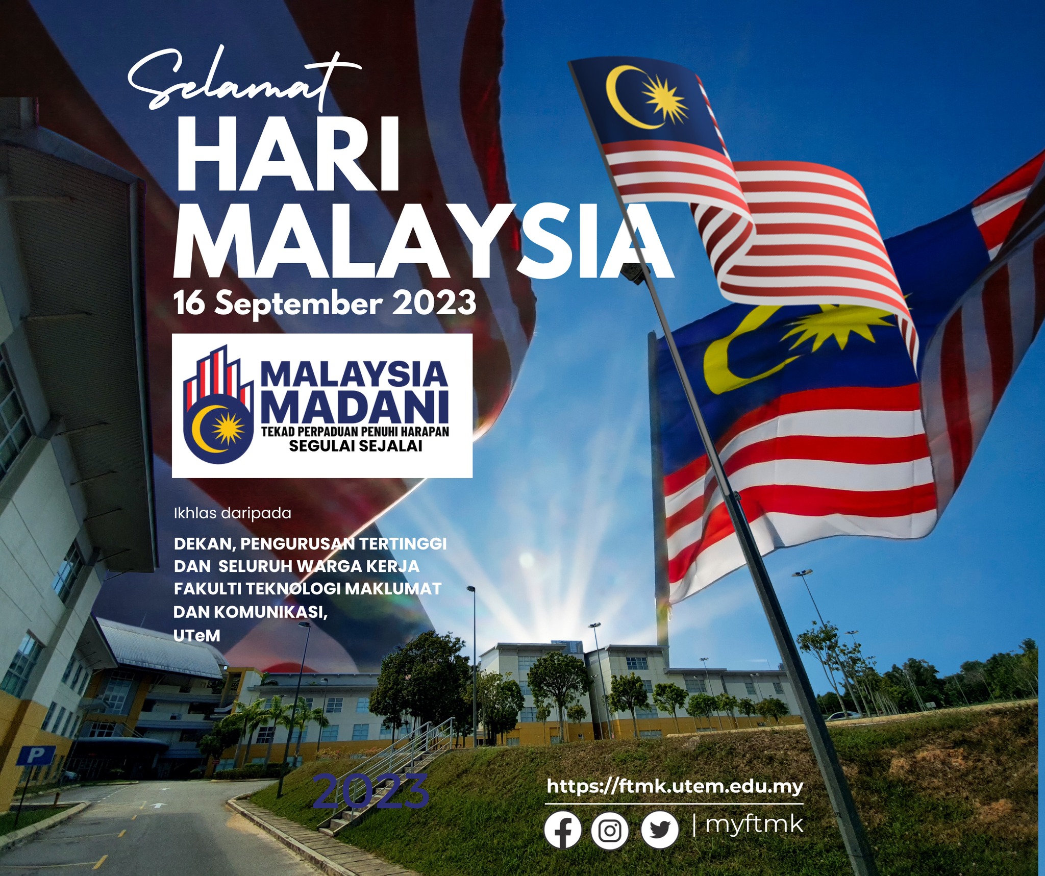 Fakulti Teknologi Maklumat dan Komunikasi ð˜œð˜›ð˜¦ð˜” mengucapkan Salam ð—¦ð—²ð—¹ð—®ð—ºð—®ð˜ ð—›ð—®ð—¿ð—¶ ð— ð—®ð—¹ð—®ð˜†ð˜€ð—¶ð—® ð—¸ð—² ðŸ²ðŸ¬ buat semua warganegara bumi bertuah bernama Malaysia.